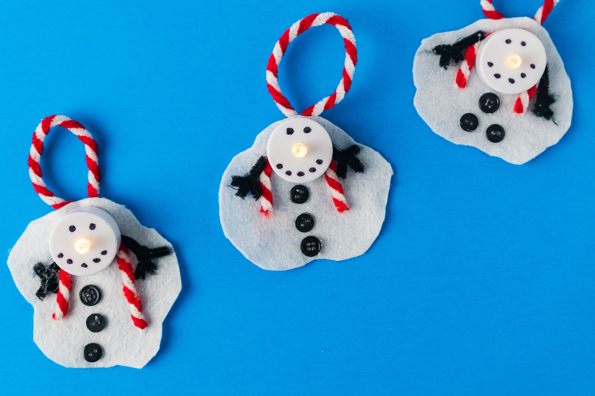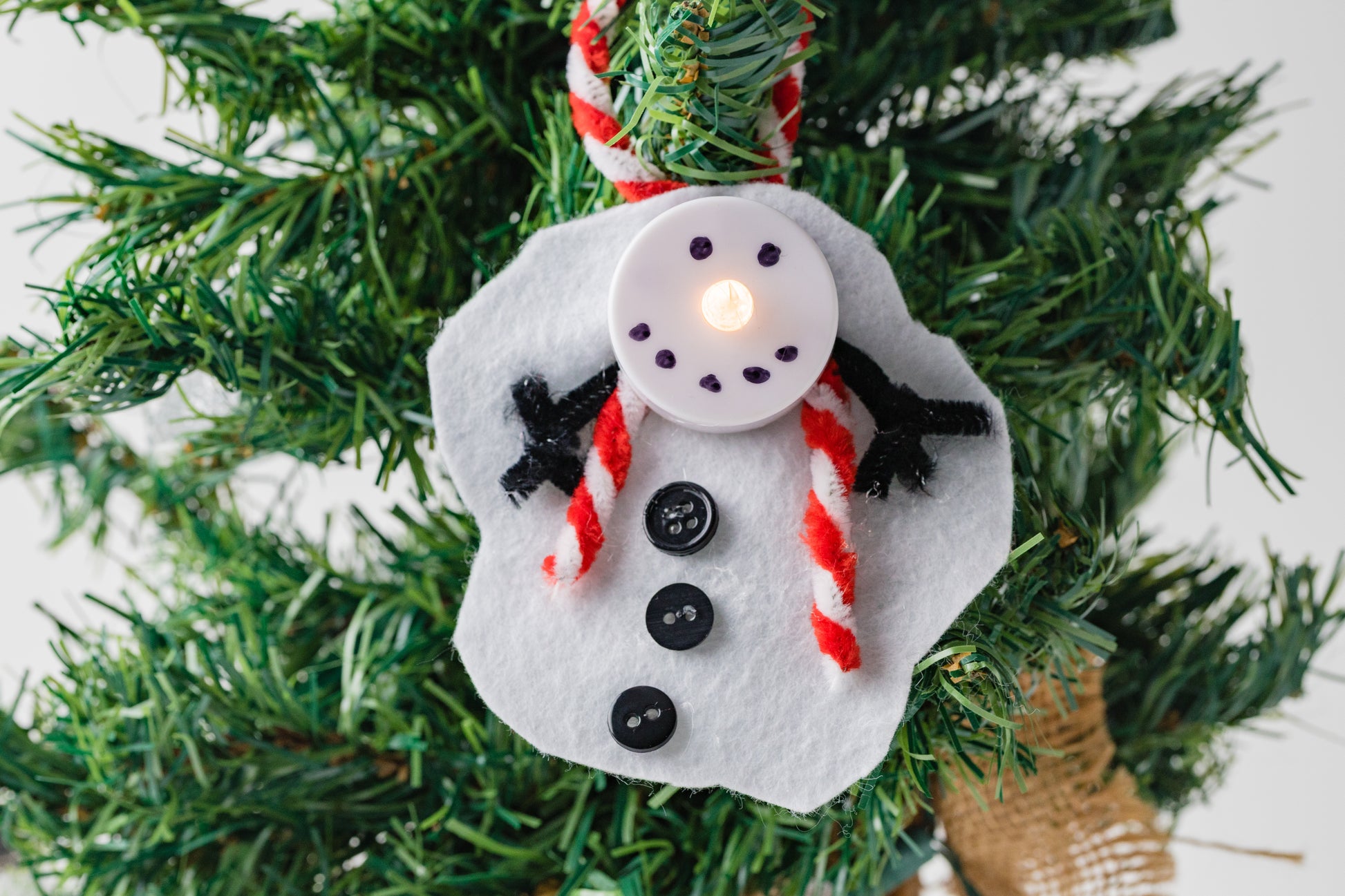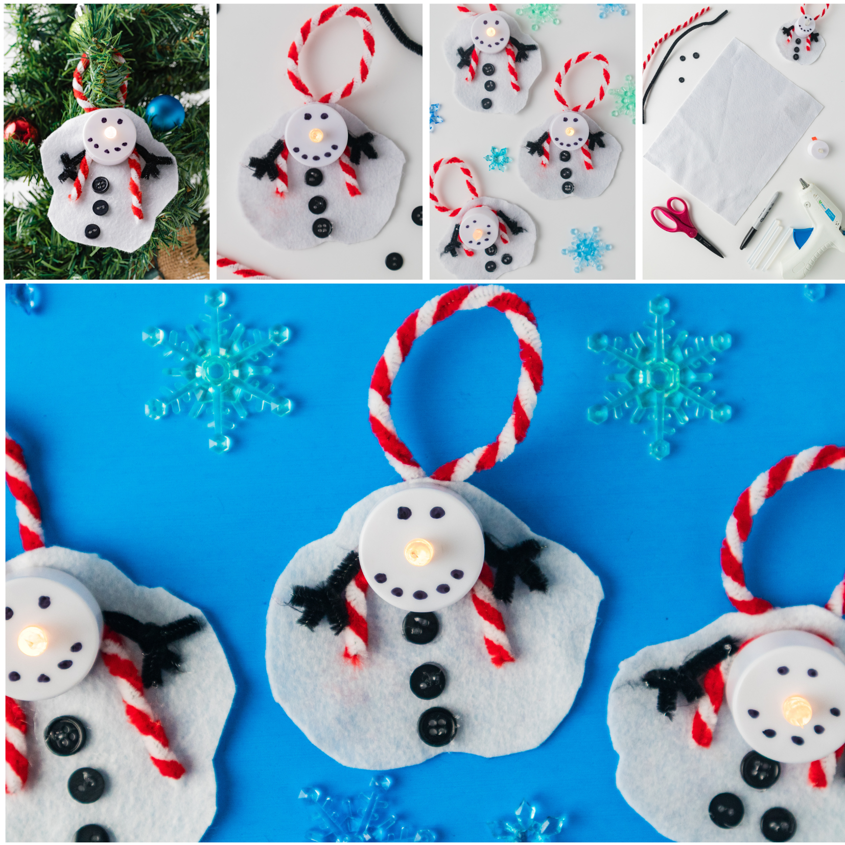 This melted snowman ornament is a playful twist on the classic holiday snowman. Using a battery-operated tea light for the nose, it "melts" into a pool of felt and brings a cozy glow to any Christmas tree. It’s a great craft for classrooms, home, or holiday parties—and easy enough for kids with adult supervision.