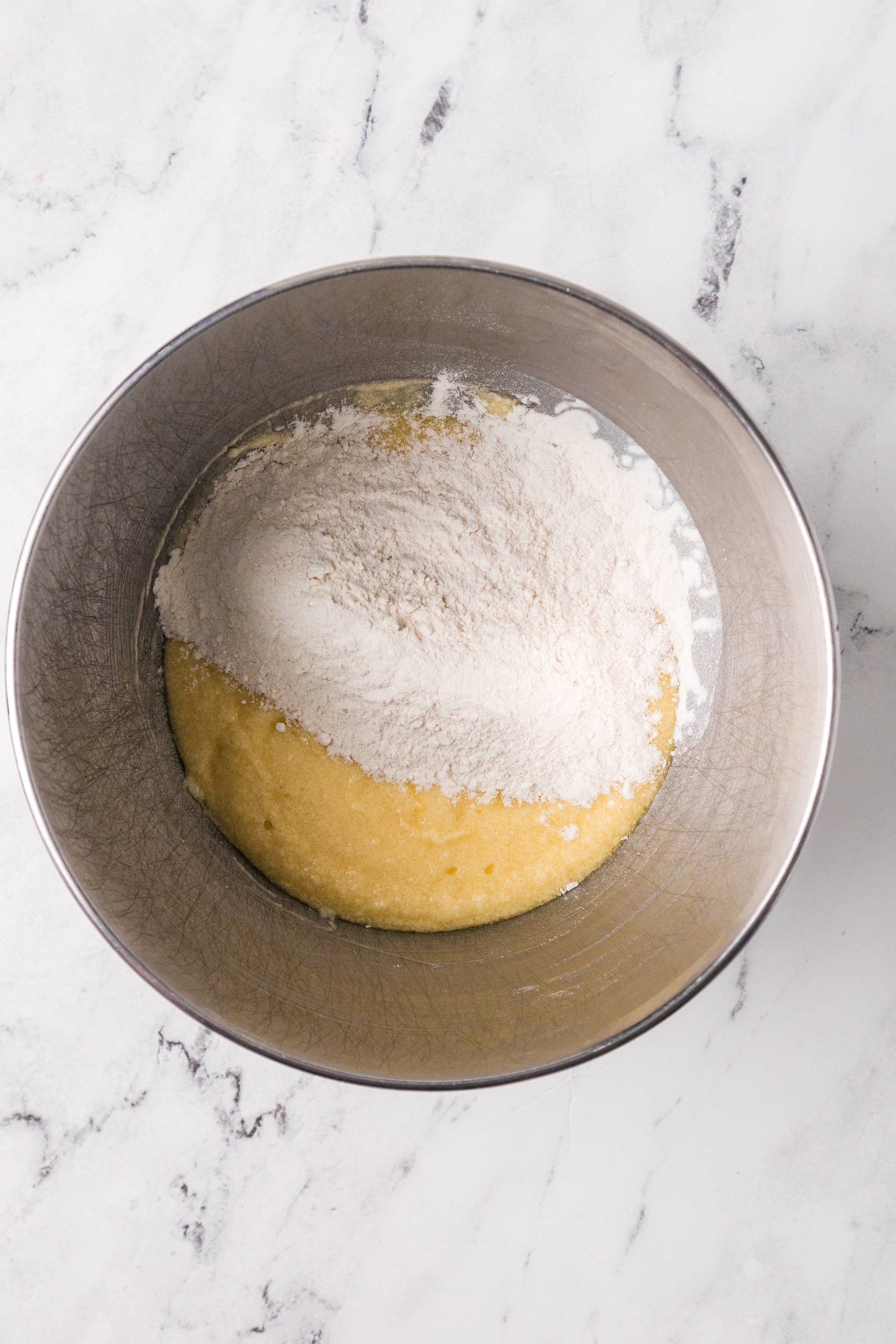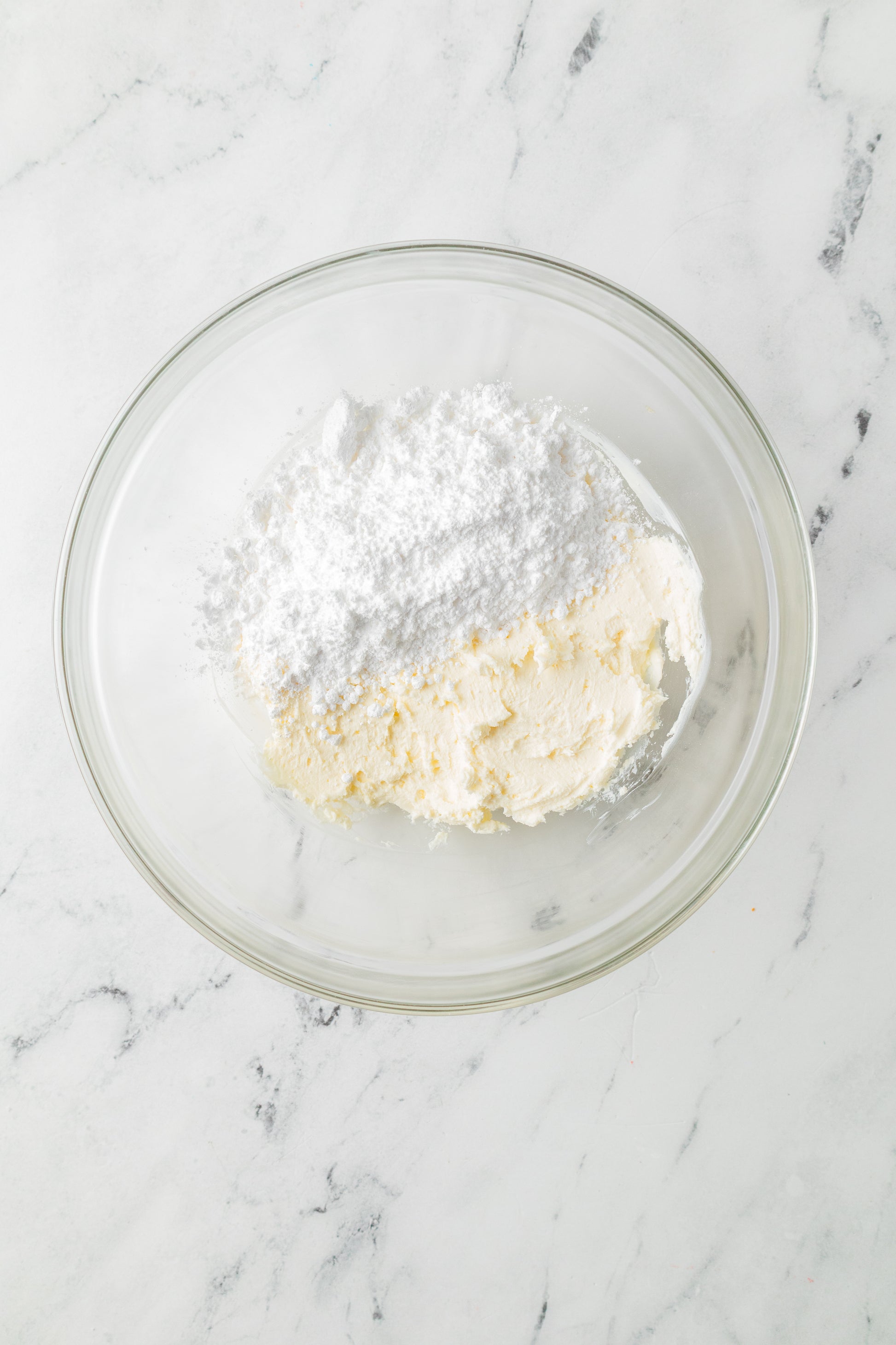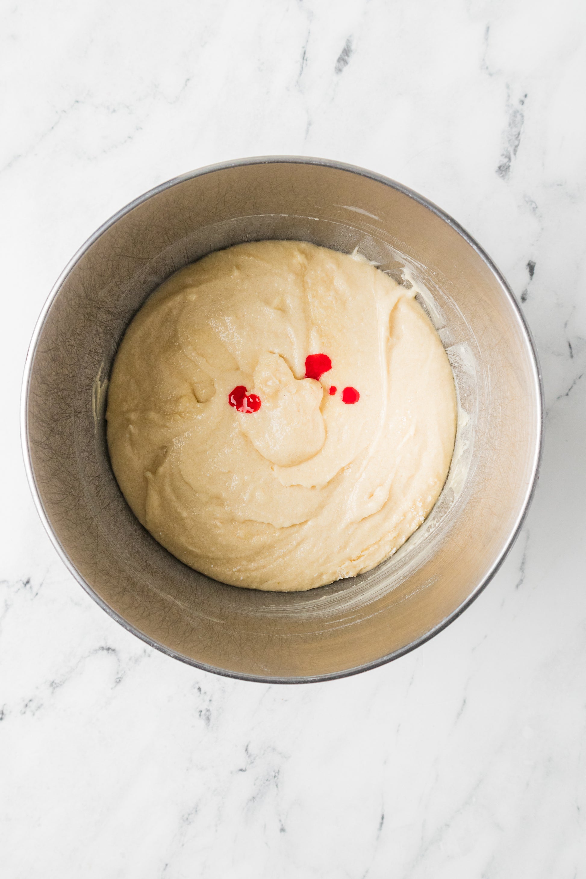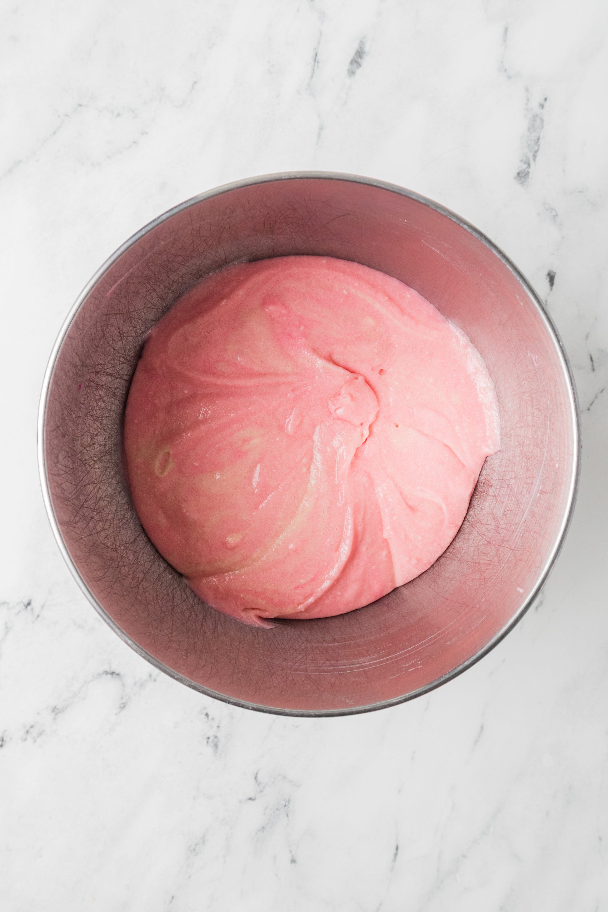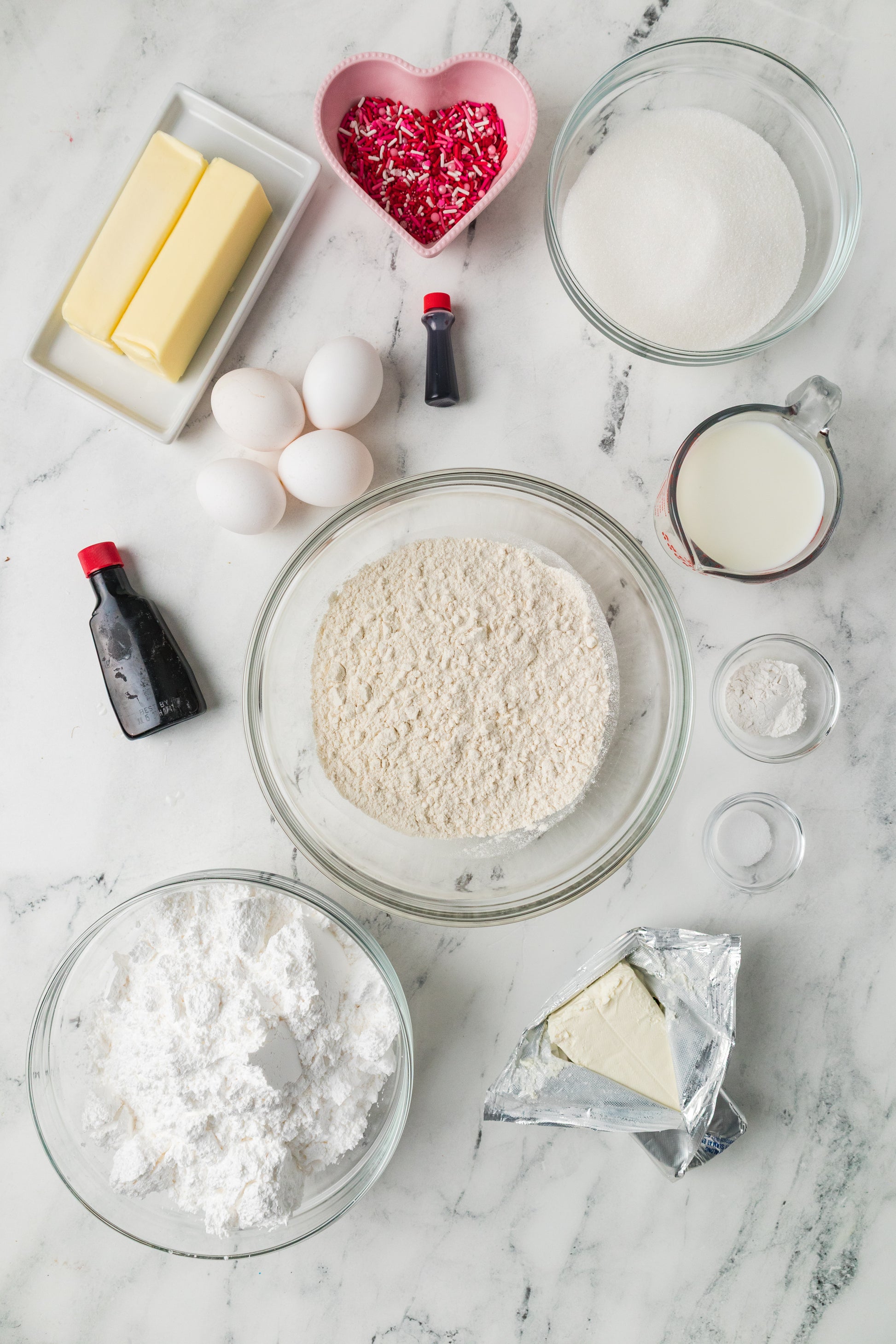 Featured ingredients: Cake: flour, baking powder, salt, butter, sugar, vanilla, eggs, sprinkles, milk, powdered sugar, food coloring;